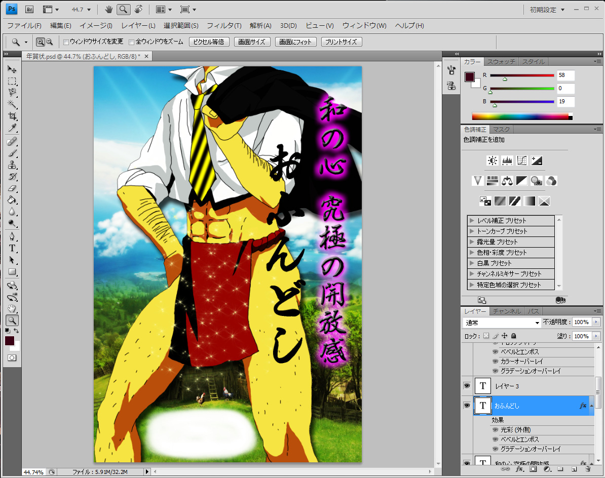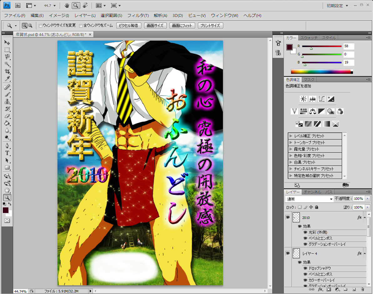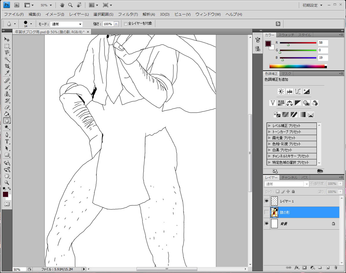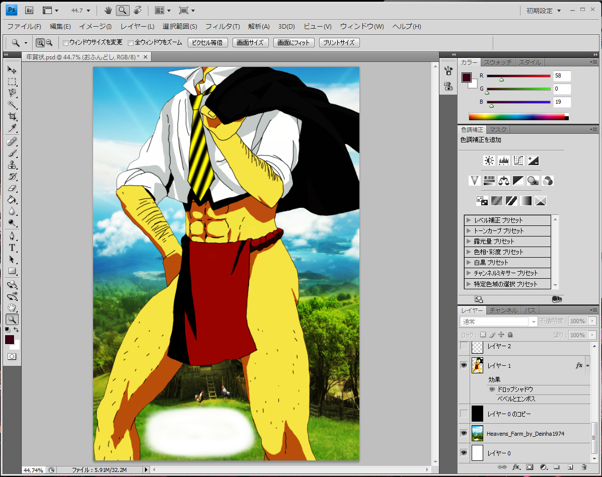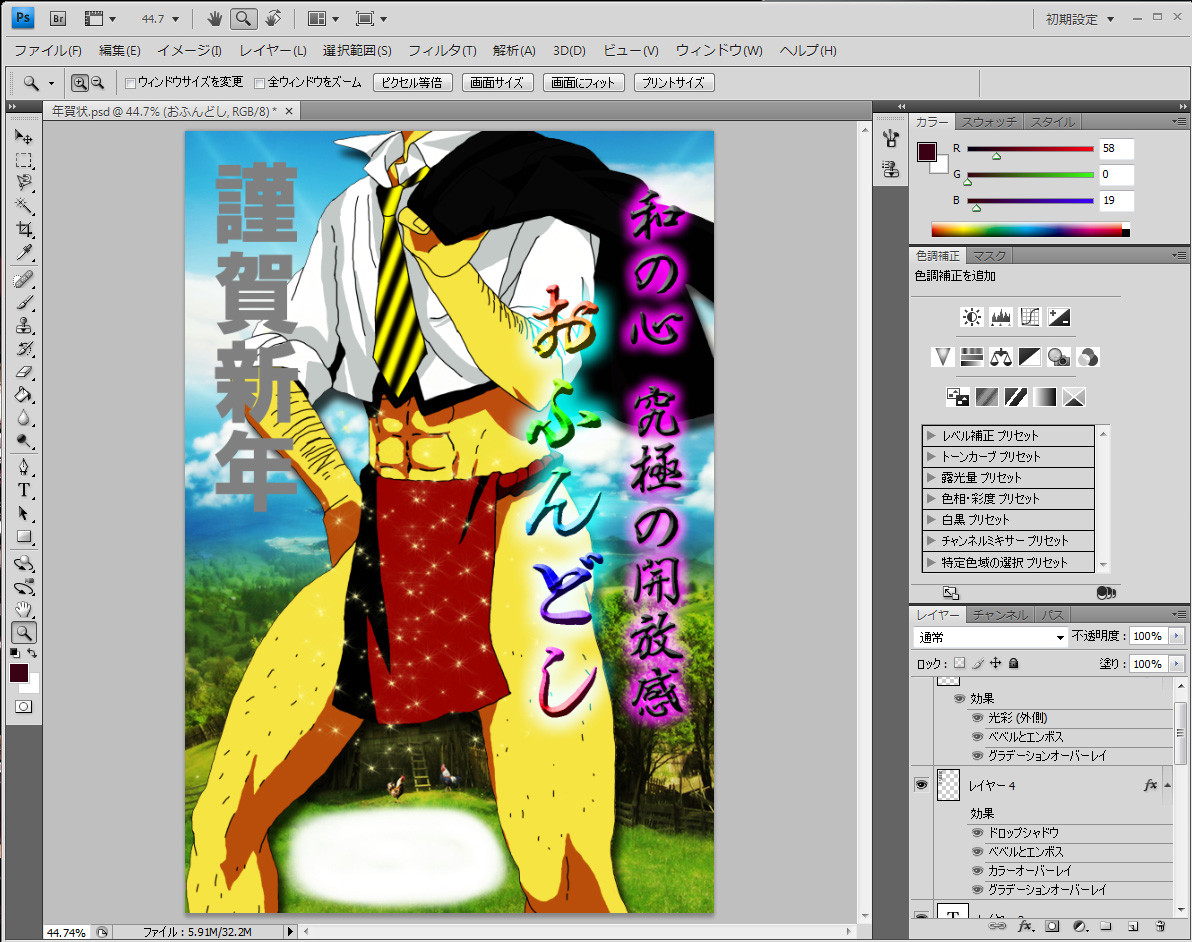 今回は今年出した年賀状について製作方法、手順をのせてみよーかなーと思った次第でございます