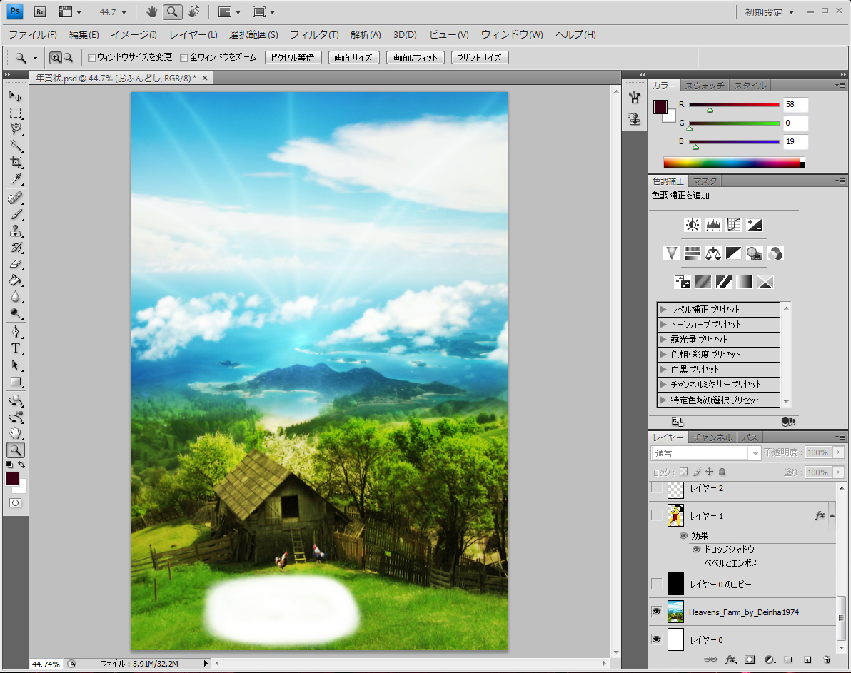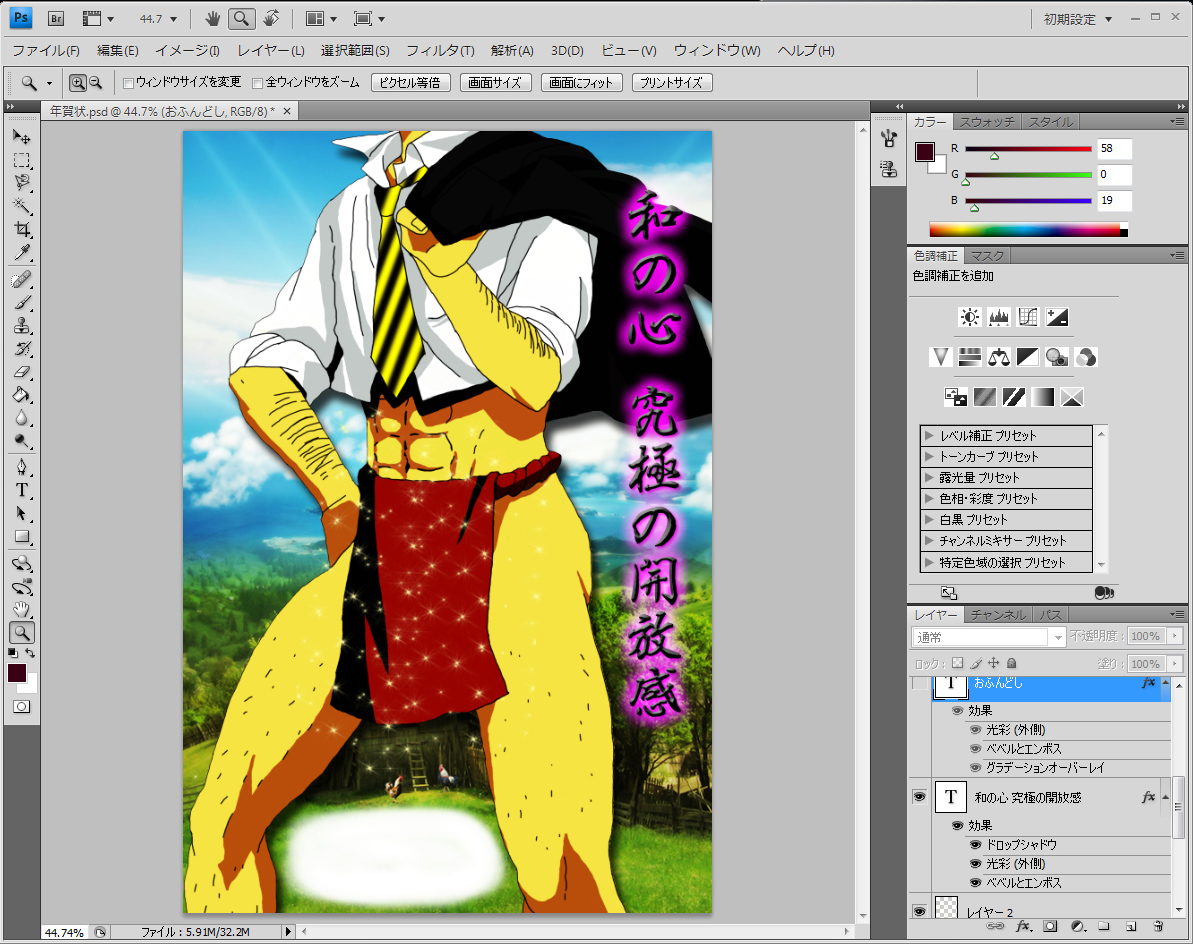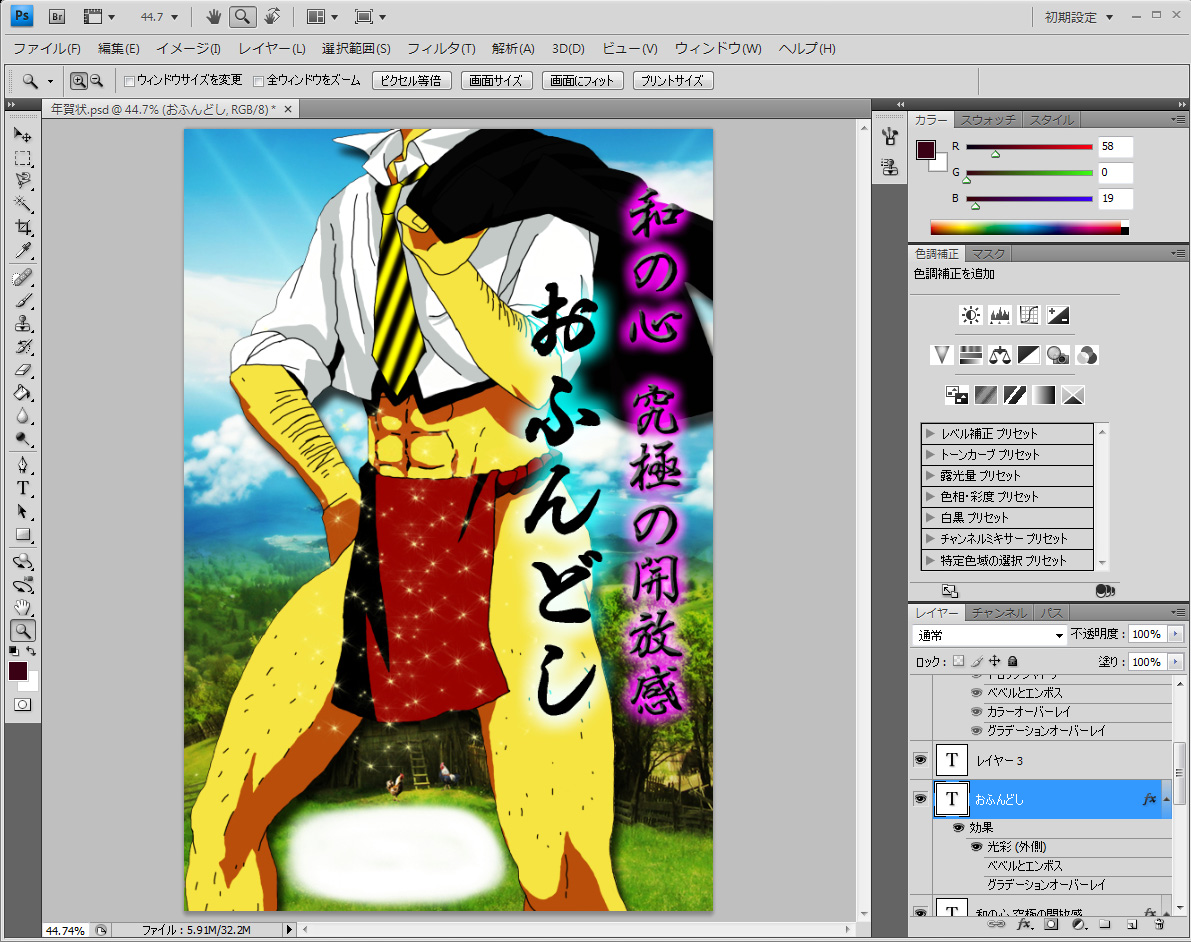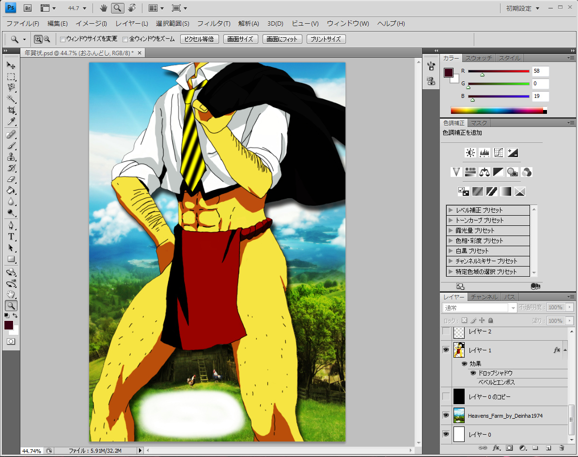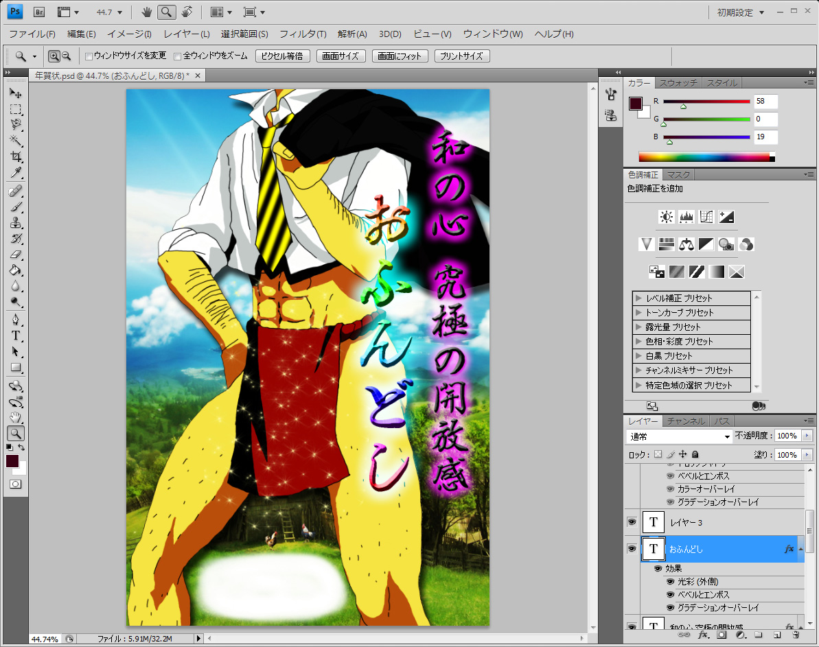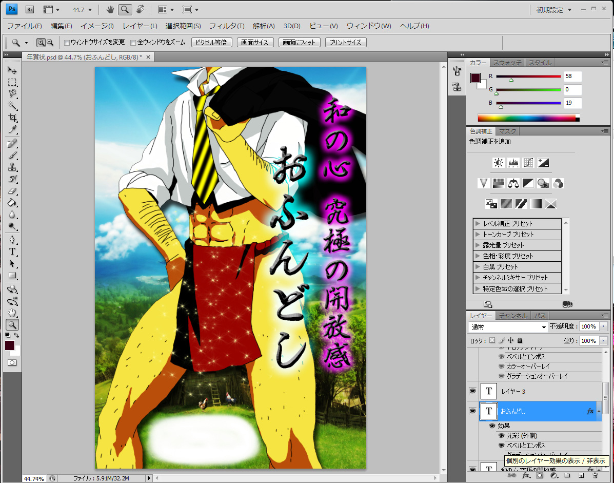 今回は今年出した年賀状について製作方法、手順をのせてみよーかなーと思った次第でございます