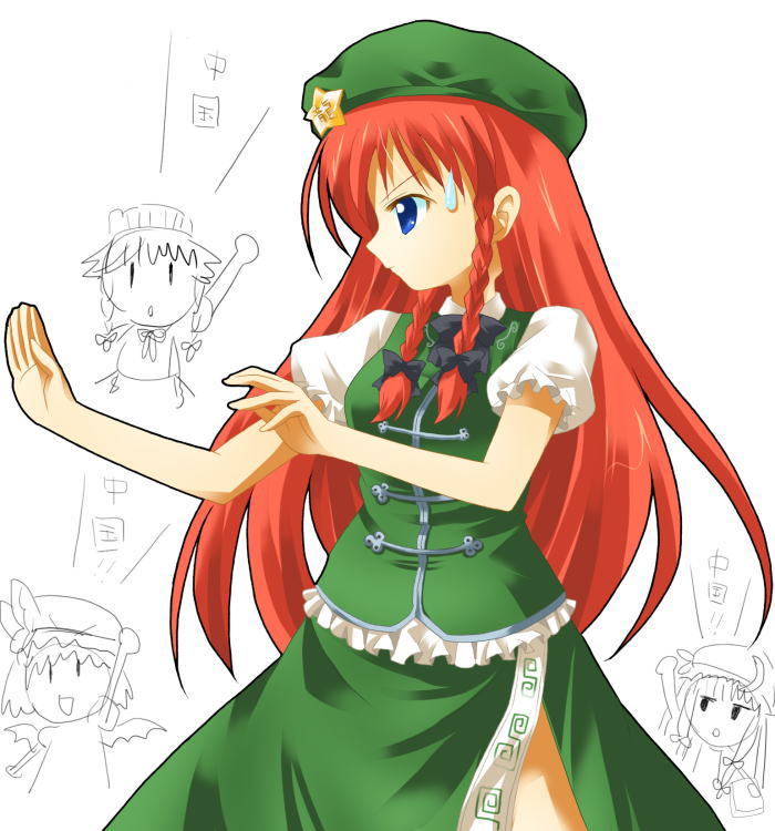 紅魔館の門番を務める中国人風の妖怪。民族風の衣装に身を包み、帽子に付いた星には「龍」の文字が刻まれている。身長は高め。