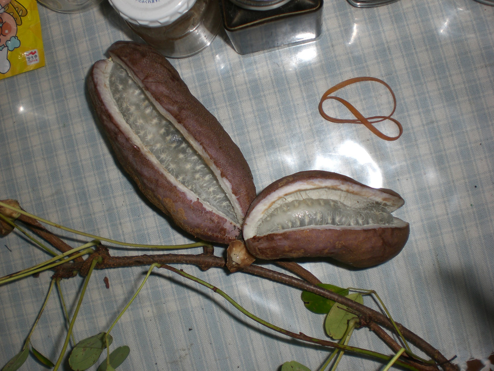 「あけび」ってなまえの木の実 種の周りを食べるやつ