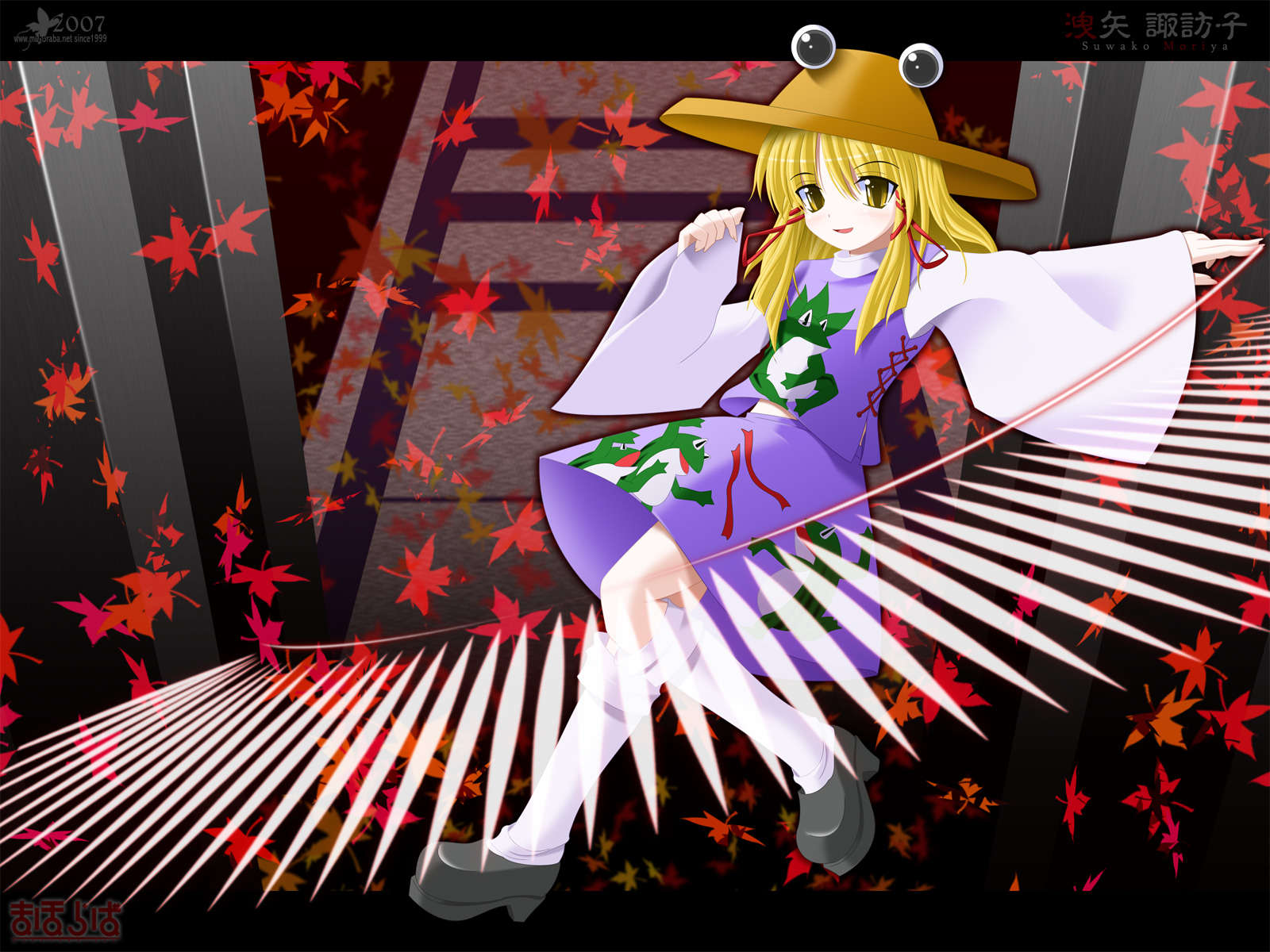 守矢の神社に祀られている蛙の姿をした神。山の神であり、遥かな古代は「ミシャグジ様」を束ねて洩矢の王国を築き国王を務めていたが、大和の神の1人である神奈子に侵略を受け敗北する。しかし王国の民がミシャグジ様の祟りを恐れて神奈子を受け入れなかったため、神奈子が準備した名前だけの新しい神(王国内では「守矢」、王国外に対しては別の名前)と諏訪子を融合させた神を信仰させることになった。しかしそれは神奈子が考えたカモフラージュであり、裏では諏訪子がそのまま信仰され、諏訪子は自分の力で神奈子を山の神とした。現在は守矢の神社で、神奈子と共に仲よく暮らしている。