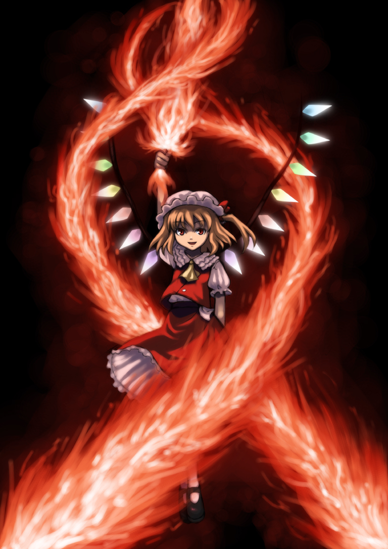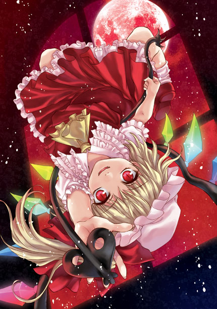 レミリア・スカーレットの妹。七色に光る特徴的な形状の翼を持ち、髪は薄い黄色をしている。身長は低め。少なくとも495年以上生きている。